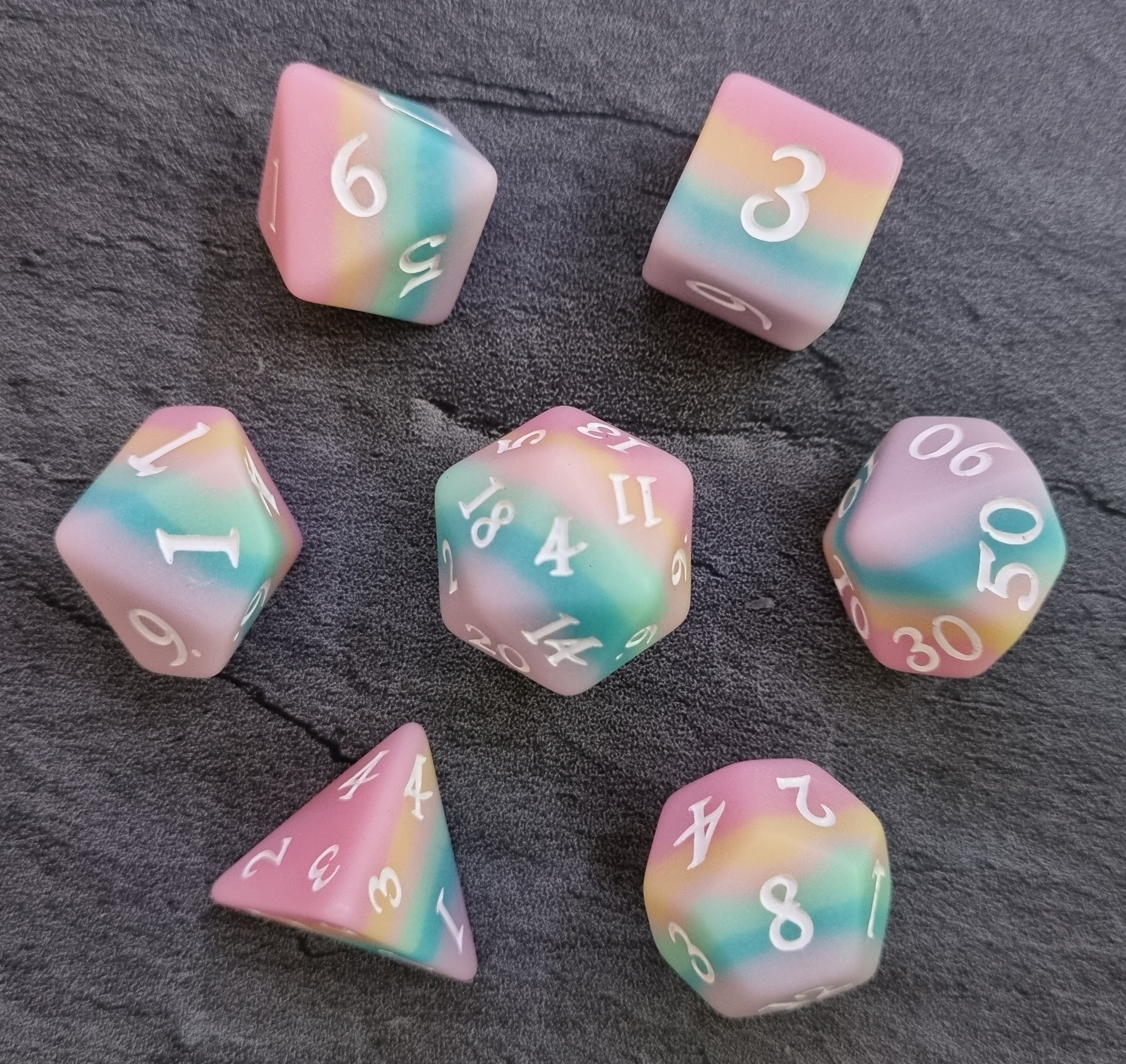 32435 link 28.12.2022 | 1 | 12 | plastic 4.79 g | purple blue (light) turquoise yellow pink Schichten , Opaque | white cast Index: . | manufacturer:![]() (Fennek And Finch) source: | 3026 Würfelbezeichnung: Dazed and Dreamy size: 21.0 mm rarity: common mold: | ![]() | |||