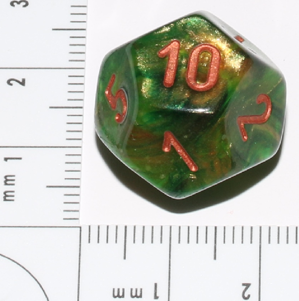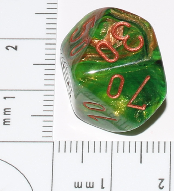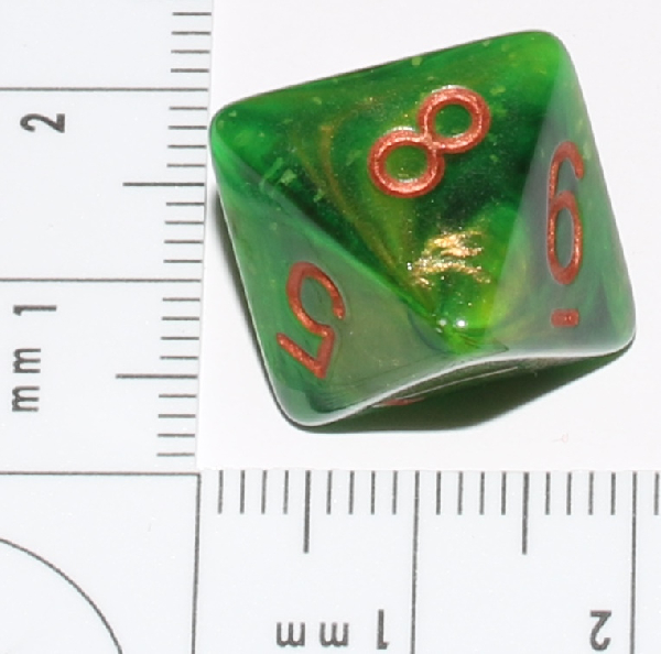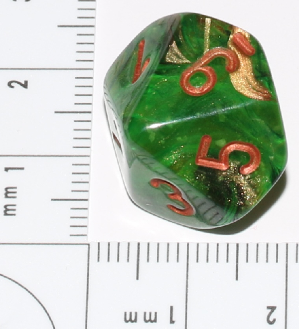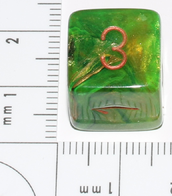 | 38882 link 04.11.2025 | 1 | 8 | plastic 3.19 g | transparent green gold (transparent klar)Swirl , Iridescent | copper cast Index: _ | manufacturer:![]() (Chessex) source: | 3804 Gruppe: Lustrous Typ: Grove/Copper Würfelbezeichnung: Grove size: 22.0 mm rarity: limited product code: CHX 38028 mold: DiceDB: | ![]() | ||||||