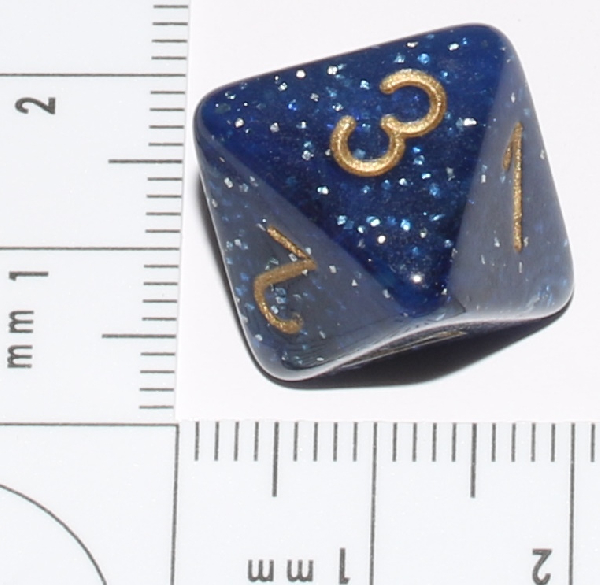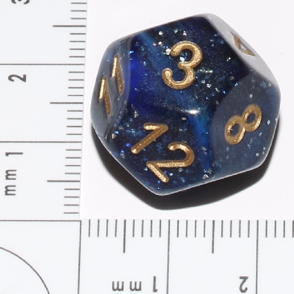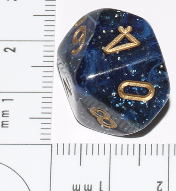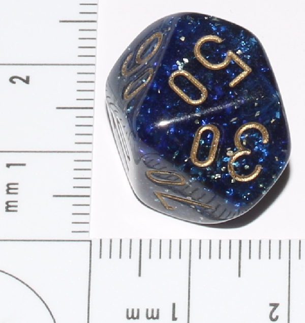 | 38904 link 04.11.2025 | 1 | 10 | plastic 3.82 g | blue (dark) white Swirl , Glitter , Objekte innen | gold cast Index: _ | manufacturer:![]() (Chessex) source: | 3807 Gruppe: Starry Typ: Night/Gold Würfelbezeichnung: Night size: 21.0 mm rarity: limited product code: CHX 38031 DiceDB: | ![]() | ||||